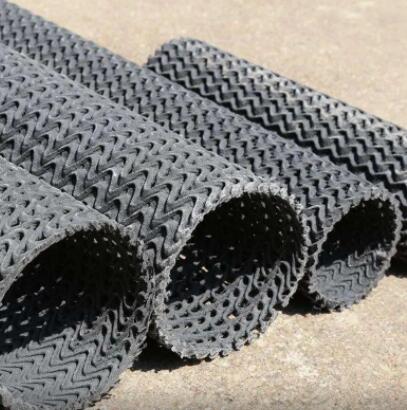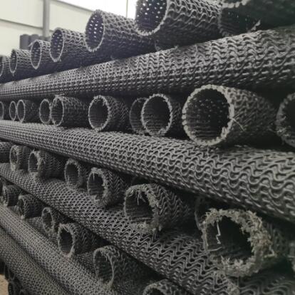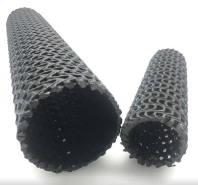 1、硬式透水管材的组成纤维为2mm左右的丝条,相互接点熔结成型,呈立体网状体,其原理与钢结构造物的桁架原理相同。表面开孔庇为95-97%,是有孔管的5倍以上,是树脂网格管的3-4倍,表面吸水率极高。